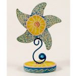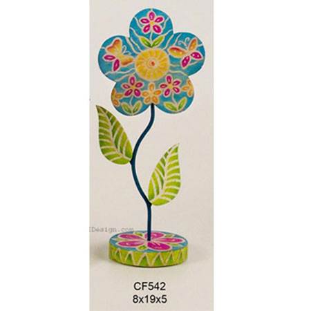 Blue Batik Style Flower. To create our batik designs, our artists draw or brush wax onto the piece, either wood or cloth. The object is then dyed, and the wax resists the new coloring. This process is repeated until a unique work of art has been created. Batik has been practiced by artisans for centuries.